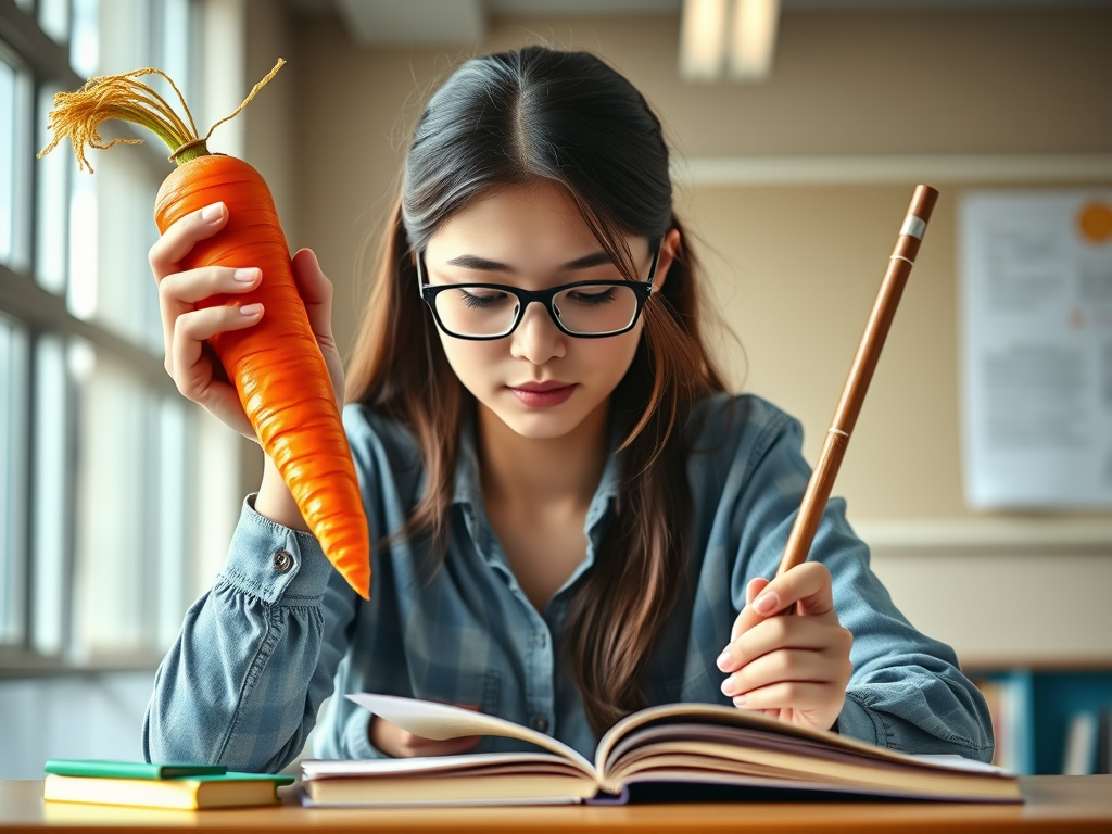 This immediately niggled at me. Surely this whole carrot-and stick metaphor is outdated by now? Why are we still talking about motivating students like we’re training animals?